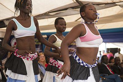 Traditional dancing during launch of pentavalent vaccine, which protects children against diphtheria, tetanus, whooping cough, hepatitis B and haemophilus influenza, by South Sudanese government in Juba on 16 July. Photo…