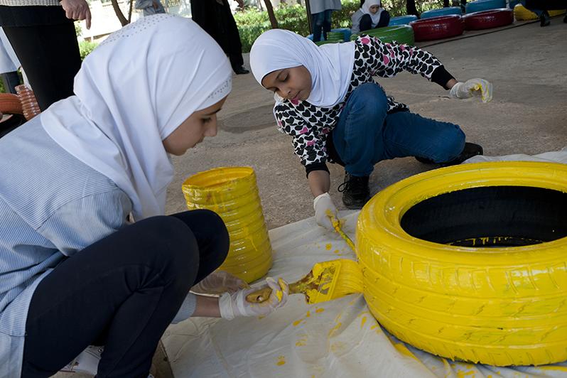 A set of colourfully painted tires stood out at the exhibition crowning the recycled art workshop held at the Tyre Public Intermediate School for Girls. Anyone who visits the school should expect to see painted tires across…