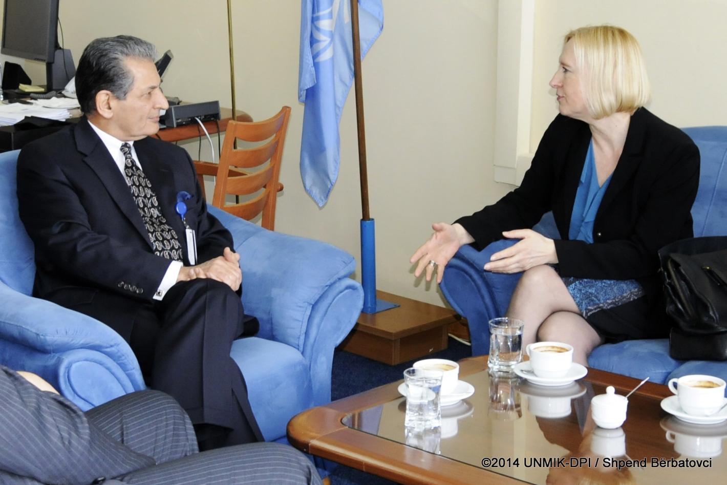 UN Political Director for Europe visits UNMIK   13 February 2014 - Pristina - SRSG Farid Zarif met the Director of the UN Department of Political Affairs' Europe Division, Elizabeth Spehar, at UNMIK Headquarters today. Ms…