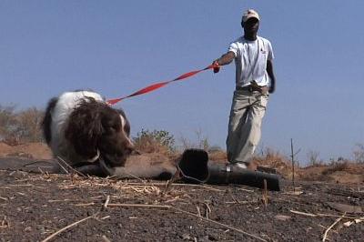 UN Mine Action Service contractor with one of eight newly arrived sniffer dogs, which will be used to strengthen security within UNMISS protection of civilians areas in Juba. Photo: UNMISS / Ghideon Musa