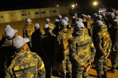 Nepalese police officers receiving final instructions at UNMISS base in Unity State capital Bentiu before searching protection of civilians’ area for items not permitted at site, including weapons and alcohol. Photo: UNMISS…