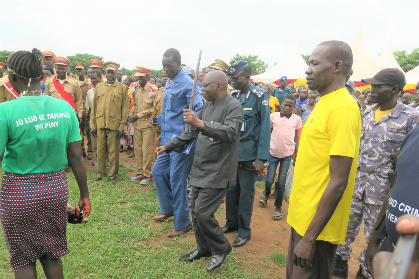 Rocrocdong residents participating in a peace festival in Western Bahr El Ghazal, organized by the United Nations Mission in South Sudan to promote unity and social cohesion. Photo by Alahayi Nemaya/UNMISS.