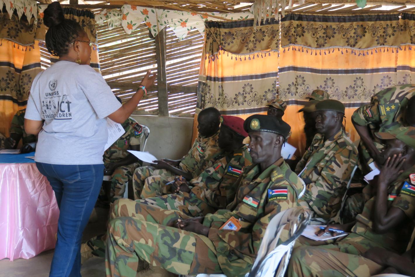 With moving testimonies of their own experiences as former underage combatants and concrete courses of action, 50 South Sudanese uniformed personnel and allied interlocuters pledge to uphold child rights at an UNMISS workshop in Eastern Equatoria. Photo by Moses Yakudu/UNMISS