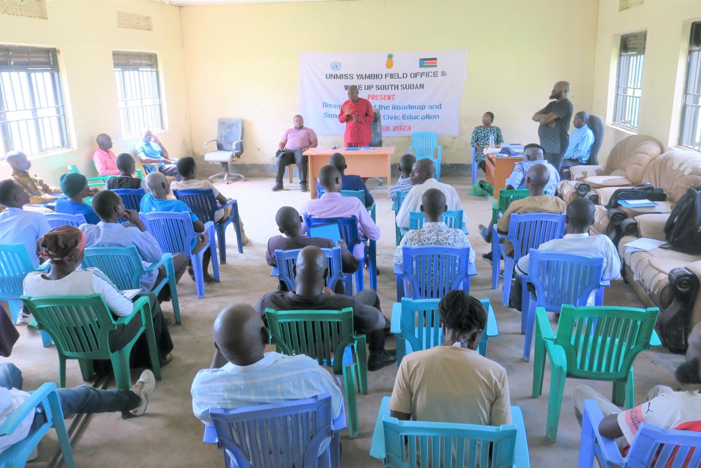 30 South Sudanese from each county in Western Equatoria State participated in a series of workshops organized by UNMISS in partnership with Wakeup South Sudan to raise awareness about peace implementation and electoral preparations. Photo by Felix Francis Katie/UNMISS.