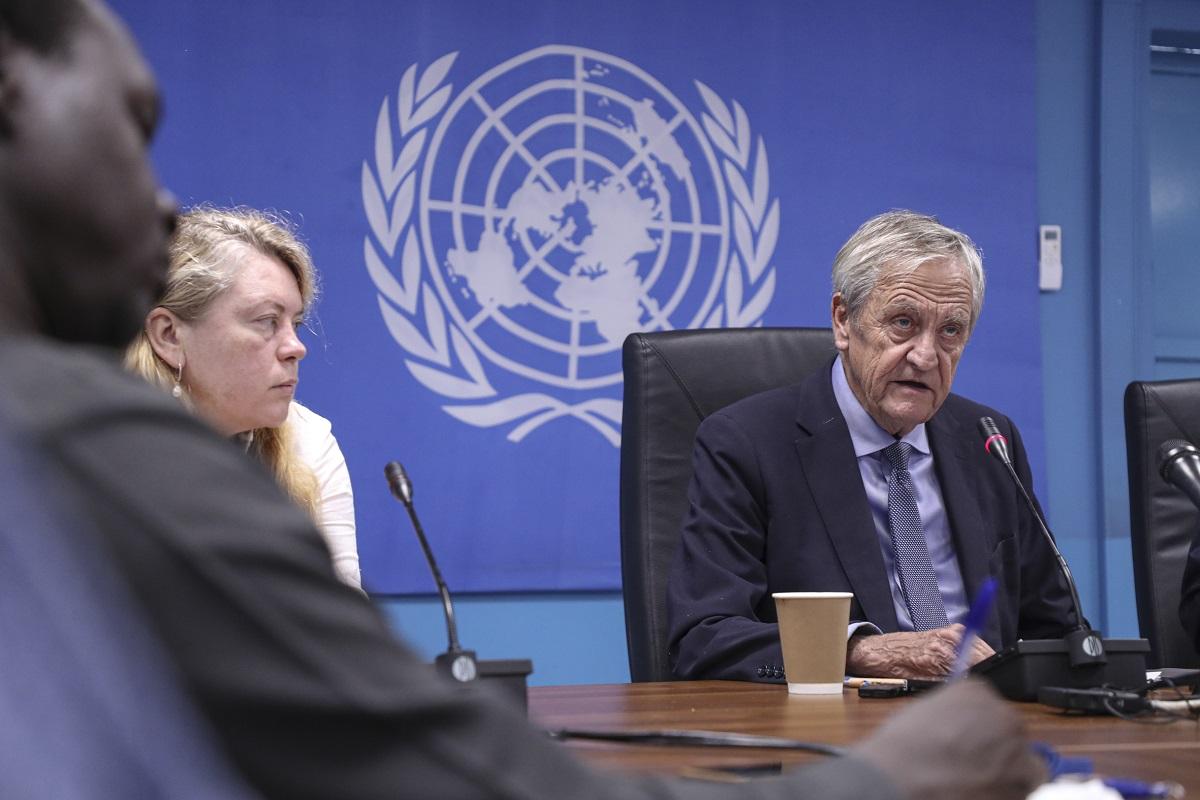 SRSG and Head of UNMISS, Nicholas Haysom, briefs the press today in Juba, the capital of South Sudan.