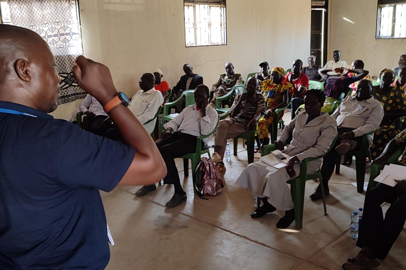 Mpako Foaleng, Chief of the UN Standing Capacity on Security Sector Reform, leads a discussion about civil society participation in security sector reform at the Tripoli offices of the United Nations Support Mission in Libya in February 2023.