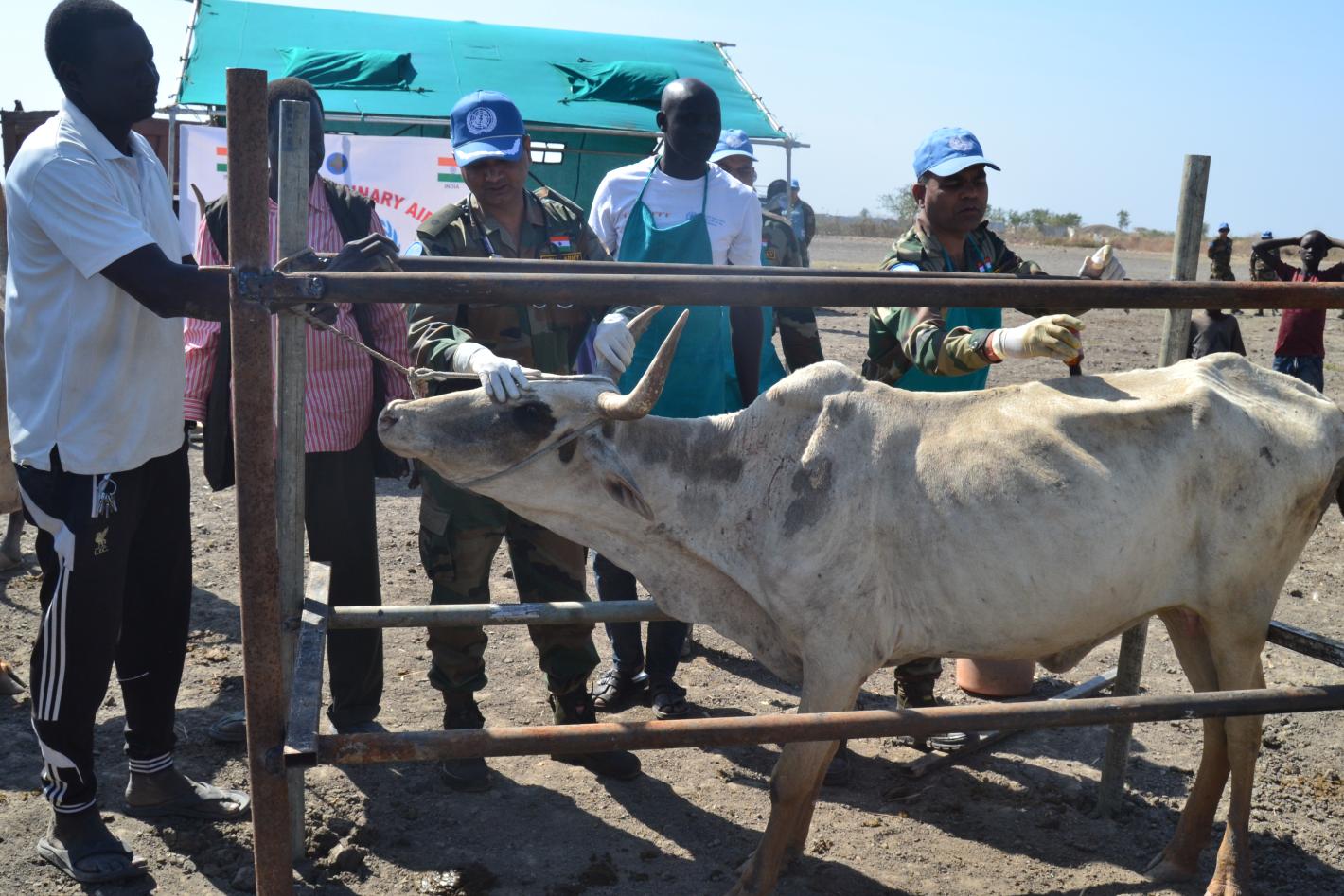 At a recent free veterinary camp in Malakal, Upper Nile, UNMISS peacekeepers from India treated more than 1500 animals for a variety of diseases and raised awareness on sustainable animal rearing practices among livestock owners. Photo by Samuel Adwok Deng/UNMISS