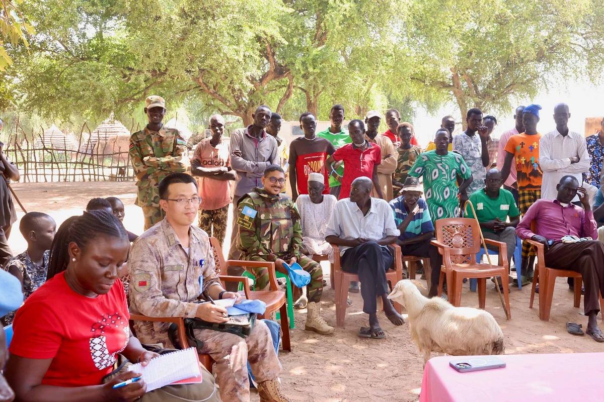 During a recent air patrol conducted by the UN Peacekeeping mission, UNMISS, to Ajakuac in Twic county, Warrap state, Blue Helmets interacted with community members who are reeling from climate shocks and conflict. Photo by Zejin Yin/UNMISS