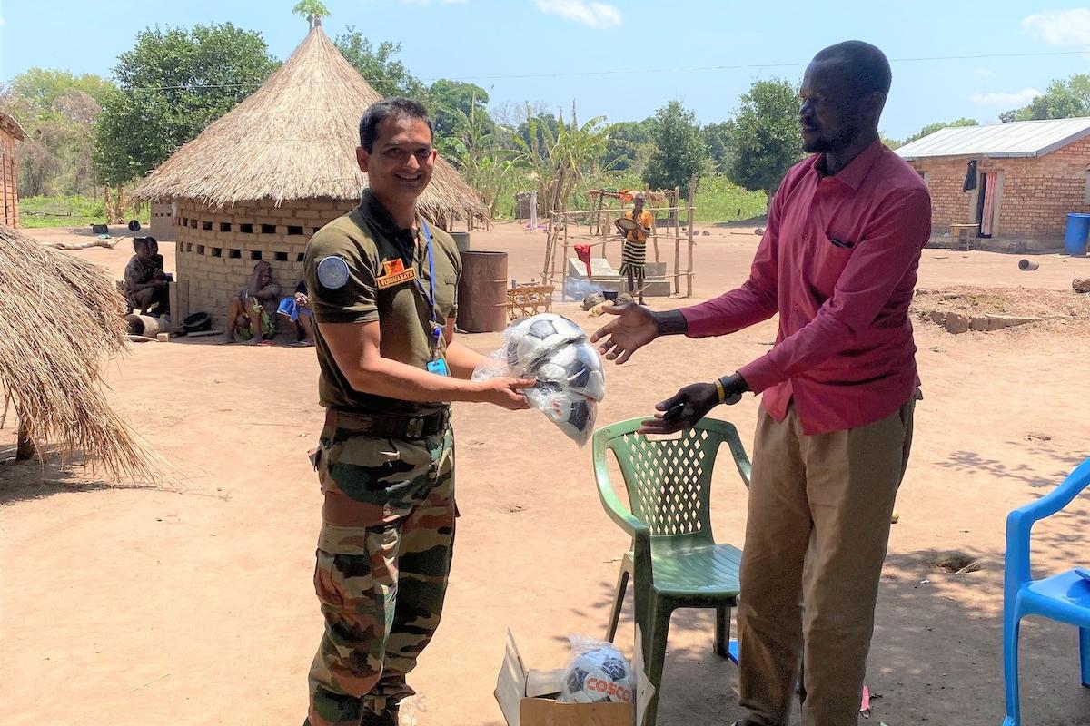 Lieutenant Colonel Vishwanath Channamallappa Gundagi from India, wanting to give children a couple of hours of happiness a day, bought and handed over 100 footballs to boys and girls in Western Equatoria State.