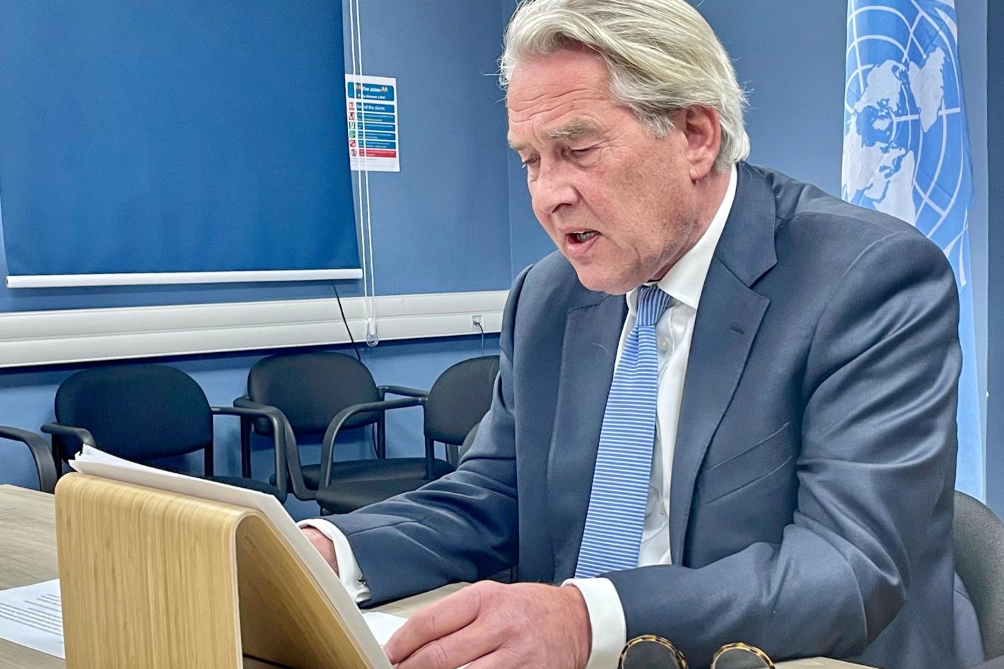 UN Special Coordinator for the Middle East Peace Process, Tor Wennesland briefs (over video conference) the Security Council on the Situation in the Middle East, including the Palestinian question (UN Photo/Daniela Penkova - 22 April 2021)