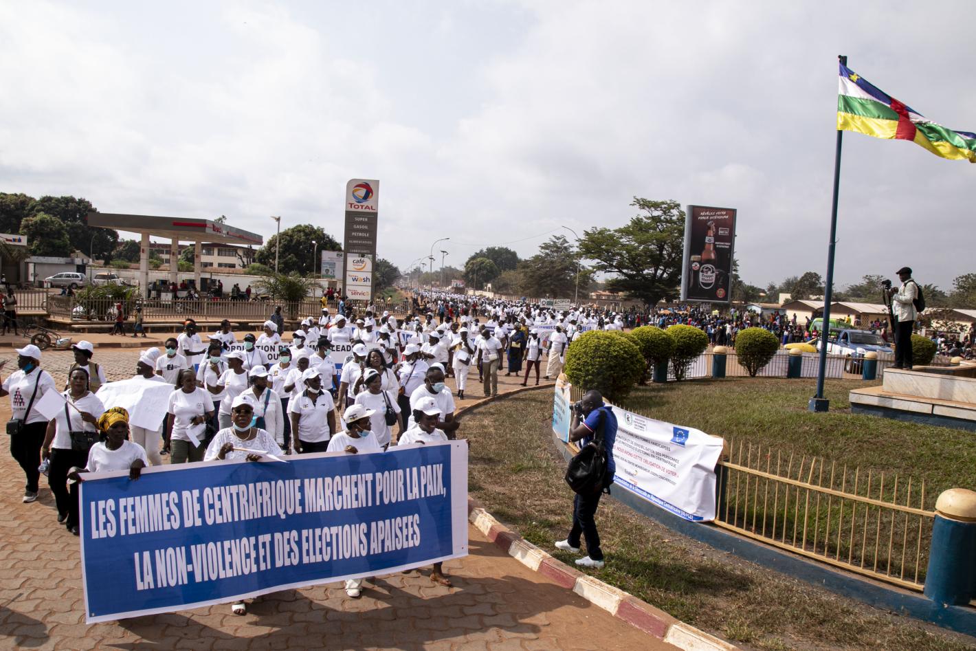 Hundreds of women peacefully marched through the main streets of the Central African Republic’s capital Bangui today to demand for inclusive, violence-free elections. “All we want is peace,” sang the participants who donned…