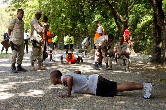 La seconde partie des épreuves de recrutement des candidats officiers de la Police Nationale Haitienne (PNH) a débuté ce lundi 23 Juillet. Les 14.000 candidats retenus doivent maintenant franchir cette étape. Photo : Logan…